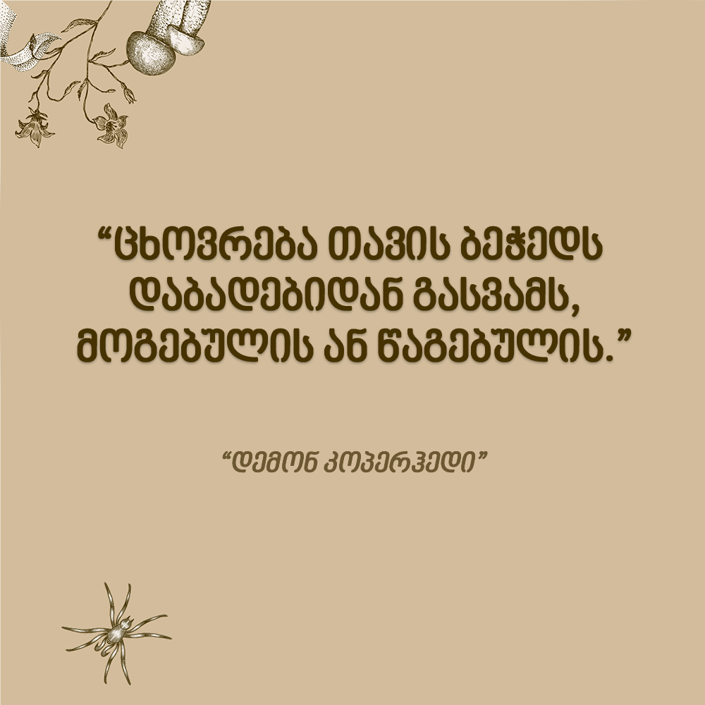 “დევიდ კოპერფილდის“ ალუზიებზე აგებული “დემონ კოპერჰედი“ სხვადასხვაგვარად ნატანჯ, მრავალ ადამიანზე მოგვითხრობს. როგორც თავად წიგნის მთავარი გმირი ამბობს: “ნებისმიერი გეტყვით, რომ ცხოვრება თავის ბეჭედს დაბადებიდან გასვამს, მოგებულის ან წაგებულის“. სამწუხაროდ, ამ წიგნში მხოლოდ წაგებულის ბეჭედდასმული ადმიანების ცხოვრებაა მოყოლილი, მათი ტანჯვა, ყოველდღიური საფიქრალი გადარჩენაზე, გადაწყვეტილებები და სასოწარკვეთა, რომელსაც ზოგიერთი პერსონაჟი საბოლოოდ ნებდება, ზოგი კი წინააღმდეგობის გაწევას ცდილობს.